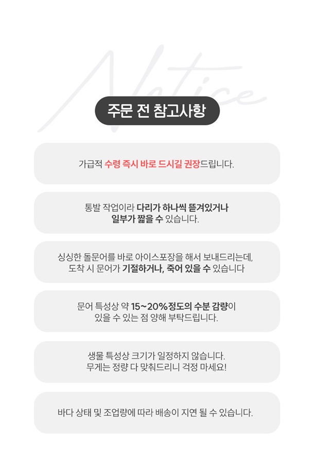 · 배송비 : 4,000원(6개 마다 기본배송비 반복 부과)
